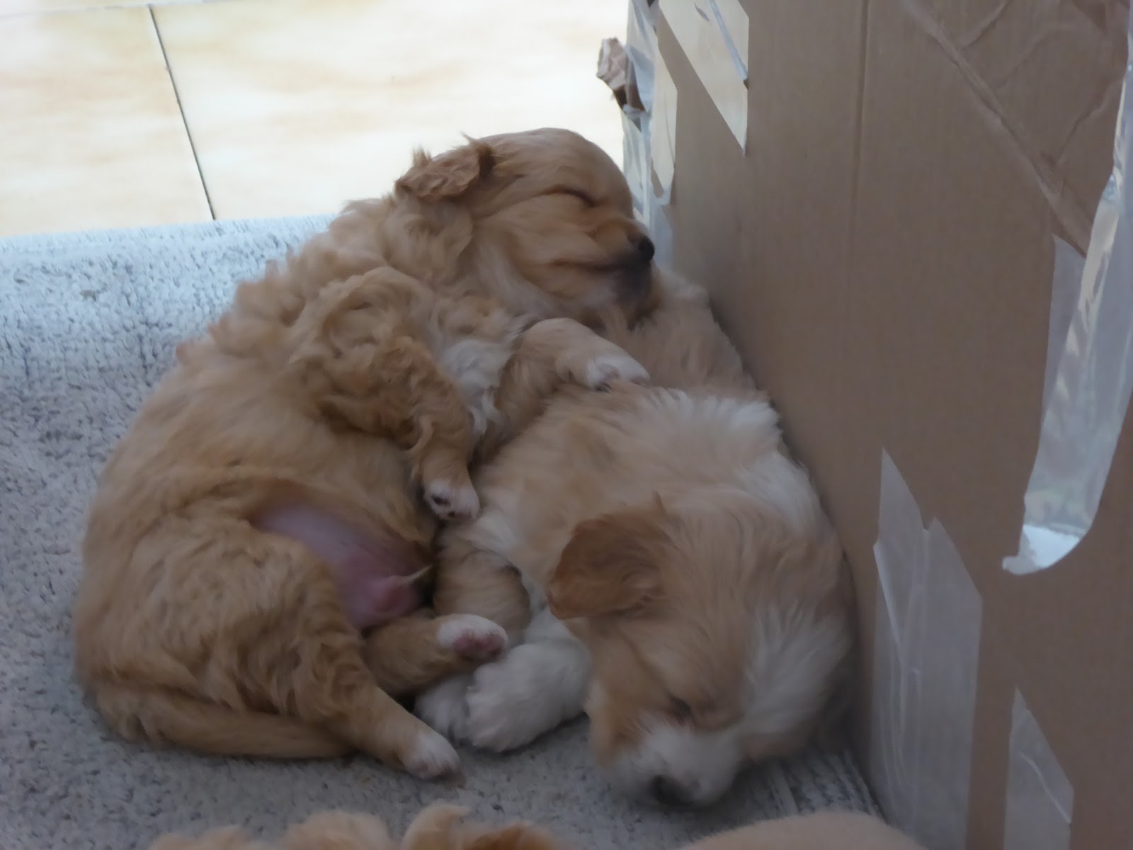 In other news the puppies have met lots of new people this week with in excess of 20 new humans coming to say hello. We've also been expanding their world with play sessions in different areas and exposure to new smells and noises. We've also tried to get them used to being in smaller groups, taking them to different areas in twos and three and always mixing up the groupings. Hopefully in the weeks ahead we can start taking them outside a little, although not on the ground just yet until they get their first vaccinations.